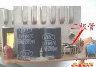 由于保险丝不断地熔断,搜索范围就缩小了。可能性只有3个:1、整流桥击穿;2、大电解电容击穿;3、初级开关管击穿。电源的整流桥一般是分立的四个整流二极管,或是将四个二极管固化在一起。将整流桥拆下一量是正常的。大电解电容拆下测试后也正常,注意焊回时要注意正负极。最后的可能就只剩开关管了。这个电源的初级只有一个大功率的开关管。拆下一量果然击穿,找同型号开关管换上,问题解决。
