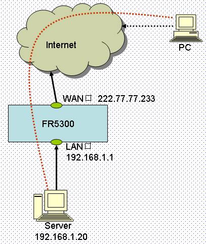 假设我们搭建的是一台WEB服务器,服务器监听的端口是80 ,那么Internet上的主机在访问的时候不可能通过http://192.168.1.20访问服务器,因为192.168.1.20是私网IP地址在互联网上不可路由的,只能通过http://222.77.77.233来访问,这里的222.77.77.233就是路由器的WAN口公网IP地址。