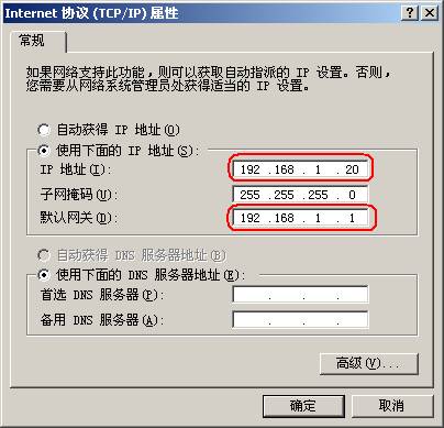 如上图所示,建立服务器的主机除了配置自己的IP地址以外,还必须配置网关的地址,也就是TL-FR5300的LAN口IP地址。
