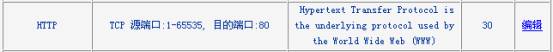 - “服务”——定义外网访问过来的数据包的端口号。TL-FR5300已经预先定义了很多“预定义服务”,这个参数是对数据包端口号的描述,本例中我们选择了HTTP作为服务,为什么?在TL-FR5300的“预定义服务”这个对象里面已经包含很多参数,对HTTP的表述参数如下图,可以看到HTTP对应的端口号范围源是所有端口,目的是80 ,在本例中策略选中“服务”HTTP意思就是说:外网访问到来的数据包,“目的端口”是80将符合本策略的端口范围。