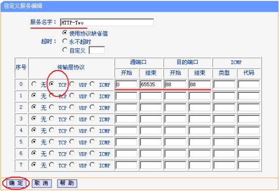 - “服务”——就是我们对外网访问过来的数据包端口的限定,选择我们“自定义的服务”HTTP-Two 。