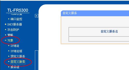 既然服务器提供的服务端口是21,那就是说外网的主机访问的时候数据包“目的端口”就21,这个在TL-FR5300的“预定义服务”里面已经存在了。