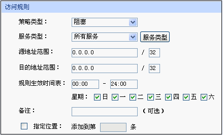 访问控制通过数据包的源IP地址、源端口、目的IP地址、目的端口以及生效时间来控制局域网内的主机对外网的访问权限。