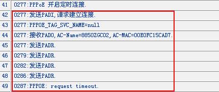 日志中显示路由器发出的PPPOE拨号请求没有回应,这种情况的可能原因有: