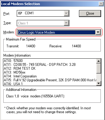 在这里的一定要在红框这个位置选择“Cirrus Logic Voice Modem”,不然的话会出现无法正常收发传真的情况。选择完了点击“Close”,后面的对话框选择默认就可以了,安装完成后,会提示您重启电脑,请重启电脑。