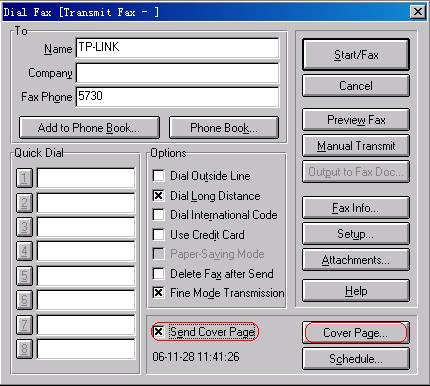 5、 然后,请在“拨传真号”对话框中,选择一个或多个收件人并选择任何其它选项。