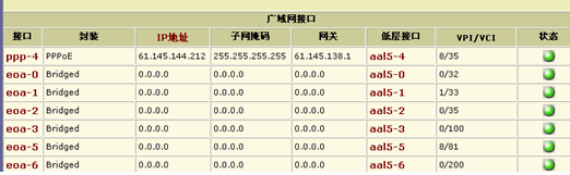 设置完成后,在主页-广域网接口中查看,如果对应接口已经获取到正确的IP、掩码、网关参数,表明已经拨号成功。