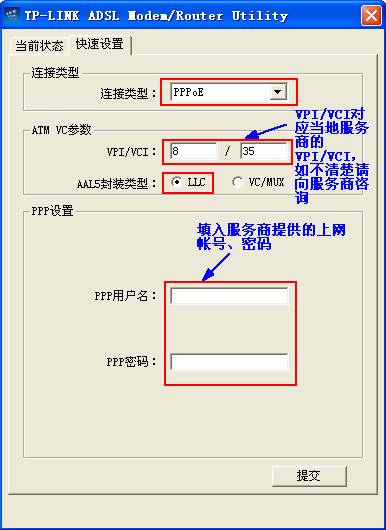 VPI/VCI:对应当地服务商的VPI/VCI值,如不清楚请向服务商咨询;