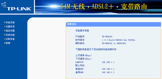 3、连接好电源适配器,接通电源后,TD-W8910/8900G会进行初始化。初始化完成后,SYS灯闪烁,常亮或者不亮表明设备初始化不良;LAN灯常亮或者闪烁(表明有数据传输),不亮可能是网线或者网卡有问题,请进行相应的检查;WLAN灯闪烁,表明无线功能已开启;ADSL灯常亮,表明已正常连接局端设备,不亮表明电话线没接好或者线路故障,慢闪表明和局端设备正在同步,请等待。