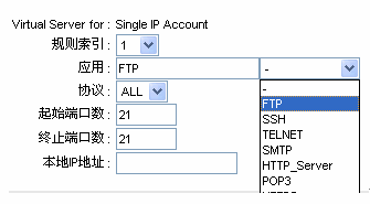 应用:第一个选项可填写自定义的服务名称,第二个选项内置了一些常用服务(FTP、Telnet、Http_Server等),如选择FTP,则自动添加端口21。