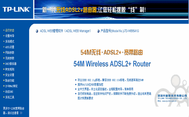 TD-W89541G做为新一代无线ADSL路由器,它集路由器、交换机、无线AP、防火墙于一体,可支持ADSL(电话线)、LAN(网线到家)两种宽带接入方式。TD-W89541G有三种工作模式:无线ADSL路由、无线ADSL桥、无线路由,本文将介绍其三种工作模式的快速安装方法。