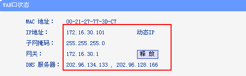 如果路由器能从ISP的DHCP服务器获取到相应的IP地址、子网掩码、网关以及DNS服务器,此时路由已与Internet成功连接