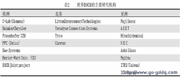 2005 年2 月在美国召开的第十届世界电子电路大会(ECWC10)中关于光电印制电路板的论文见表1;
