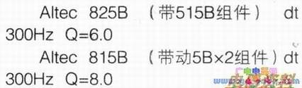 低音扬声器的Q是带AltecA-7装置的825B短喇叭的低频反射箱,及带两个低音喇叭组件的双式喇叭815A之Q,用数式表示如下: