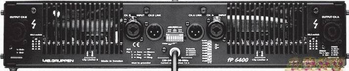 在功放输入灵敏度方面,做得最出色的当属瑞典的顶级品牌LAB.Guppen。图3 为6400 功放的后面板,可以看见正中有一排蓝白色的 开关,这就是调整功放输出模式和输入灵敏度的选择开关。