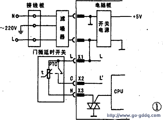 如果上述检查未见异常,则可能是电脑板上控制微延时开关的晶闸管开路或未导通(晶闸管若短路,会有专用的代码显示)。在接通电源并按压一下启动键时,检测控制微延时开关的晶闸管触发的CPU端,如无变化,则说明晶闸管没有导通,这时再对晶闸管及其触发电路进行检测,找出故障点,就可对电脑板进行检修,必要时更换电脑板。