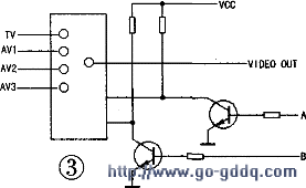 那么,尽管A、B两点都是低电平,但两个三极管的c极电平却是一个高,一个低,这样机器就并不工作在TV状态,而此时屏幕显示却并不是AV。所以说,光看屏幕显示有时是不可靠的,得看此时真正的逻辑状态。