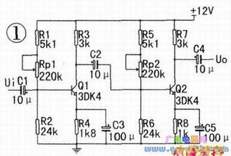 下面结合如图1所示的“两级放大电路”例子,讲述如何在业余条件下,制作双面印刷电路板的过程。