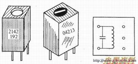 在线圈中插入磁心或磁帽;在线圈中设置一滑动触点;把两个线圈串联,改变两线圈之间的相对位置,以使量变化。如彩色电视机的每种机芯(板)中有几个带磁心的可调线圈,为单线圈带屏蔽罩,如日立彩电电路板上的视频检波的线圈40213、伴音鉴频2142192等电感线圈,其外形如图1所示。它们与相应的电路形成谐振选频、等功能。