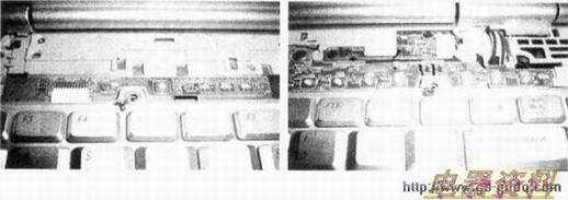 第六步:在下图中的A、B两点用平口改锥撬下开/关机按键及指示灯面板。
