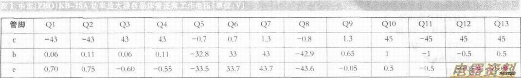 下表是中宝(ZBO)KB-18A各晶体管正常工作电压。