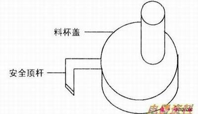 4.试机把粘牢后的安全顶杆试装在机体料杯上,观察其开关是否顺畅自如。如果不顺畅,可用锉刀或细砂纸打磨不光滑处粘物至开关顺畅关上。把开关复位,接通,启动手动开关,看电机是否转动。如果电机不转,说明顶杆端头不到位,未能与电机相连。此时,要对顶杆进行调整。