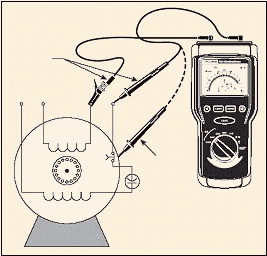 当测试定子的时,要确保定子绕组和相线是断开的,测量绕组之间以及绕组和地之间的绝缘电阻(图1所示)。
