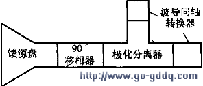则是馈源盘、极化器和过渡波导的总称,有时也简称为馈源;右图为分体式馈源结构图。