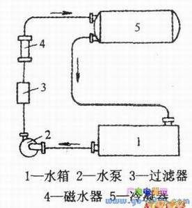 ④磁化水除垢方法。这种方法是在冷却水进入冷凝器前,通过一个磁水器(见下图)。