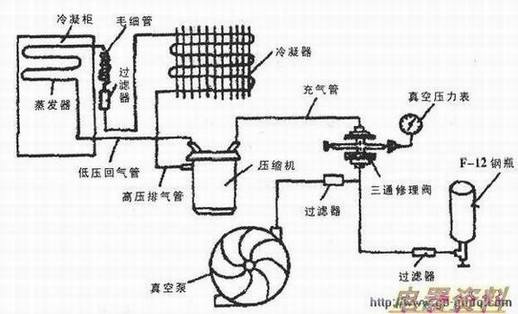 冰堵是由于冰箱制冷系统真空处理不良,系统内混入了过量的水蒸气,即含水量过大或是制冷剂本身含水量超标等原因而引起的。混入制冷系统中的水蒸气与制冷剂在系统中一起流动,当水蒸气流动到毛细管出口和蒸发器进口时,由于上述区域的温度很低,水蒸气冷凝成冰珠并将管路堵塞。若制冷剂含有一定水分,水分在系统内随制冷剂循环,当循环到毛细管出口处时,由于压力减小,制冷剂很快蒸发温度降低,但水分就会结成冰。冰堵大都发生在毛细管的出口端。当液体制冷剂由毛细管到蒸发器蒸发时,体积大大膨胀,变成气态,大量吸收热量。这时,蒸发温度可达到-5℃左右,系统内的微量水分随制冷剂衢环到毛细管出口端时就冻结成冰。由于制冷剂不断循环,结成的冰体积逐渐增大,到一定程度就将毛细管完全堵塞。发生冰堵后,制冷剂不能循环,箱内温度升高,蒸发器上的霜就会融化。箱内温度升至一定程度时,冰堵处小冰块会融化,管道恢复畅通,制冷剂又能正常循环制冷,所以蒸发器又开始结霜,待温度降到一定程度时,制冷剂中的水分又在毛细管出口处结冰,发生冰堵。这种性的结霜、化霜现象就是冰堵故障。