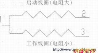 压缩机启动绕组和工作绕组的判断(如下图所示)。将R×1挡先调零,测压缩机三个端子的。