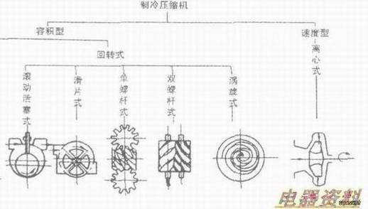该型压缩机主要用在大型冷水设备上。它的旋转速度快,一般为30r/s~1500r/s,吸气量为O.03立方米/S~15立方米/s,靠叶轮离心旋转压缩制冷剂,像水泵叶轮的原理一样,只是构造上有所区别。当转向与压缩机设计相反时,压缩机不工作,所以要求压缩机按规定的方向旋转,即有相序作保障。