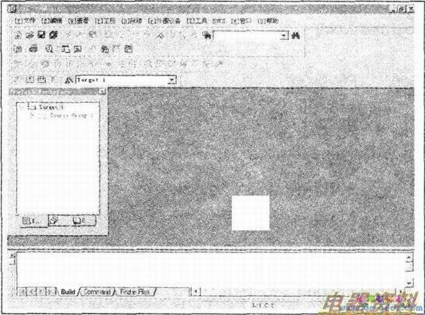 建造工具栏主要包括文件编译、目标文件编译连接、所有目标文件编译连接、目标选项和一个目标选择窗口。除错(DEBUG/调试)工具栏位于最后,主要包括一些仿真调试源程序的基本操作,如单步、复位、全速运行等。在工具栏下面,默认有三个窗口。左边的工程窗口包含一个工程的目标( target)、组(groupl和项目文件。右边为源文件编辑窗口,编辑窗口实质上就是一个文件编辑器,我们可以在这里对源文件进行编辑、修改、粘贴等。下边的为输出窗口,源文件编译之后的结果显示在输出窗口中,会出现通过或错误(包括错误类型及行号)的提示。如果通过则会生成“HEX”格式的目标文件,用于仿真或烧录芯片。