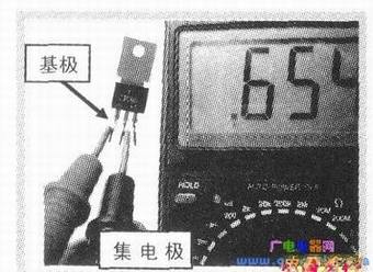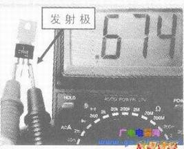 (1)据晶体三极管的集电结的正向导通电压降总小于发射结的正向导通电压降,结合数字表二极管档能直读PN结导通电压降,我们就能很方便利用该点直接判断三极管的三个极及类型。实例如下,对比上图和下图可知:上图所测电压小一些。应为基极到集电极电压,即集电结正向导通电压降0.654V;下图所测电压大一些,应为基极到发射极电压,即发射结正向导通电降O.674V;固综合上图和下图可直接判断该三极管的三个极由左到右依次为基极、集电极、发射极,且为NPN型管。对于型管亦可同理检测判断,请读者自己验证。该检测技巧也是本人在本文要着重强调的。