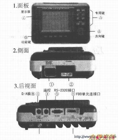 (5)PRINT键:打印(6)SAVE键:存储(7)DATARESET键:数据复位(8)START/STOP键:开始,停止测试(9)方向键,用来移动光标。
