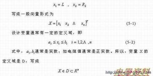 设计变量也可通过灵敏度、参数分析进行选择,PSpice/Optimizer9.0版本原可选择8个设计变量,10.3版本没有限定。本例的设计变量选择L和RL,于是,可用数学上独立变量的符号写出