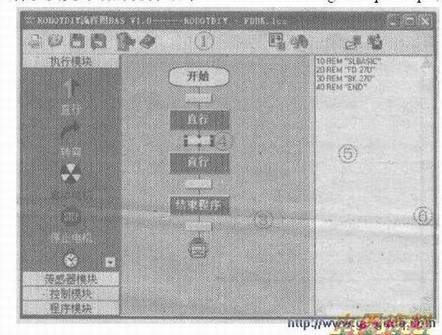 (3)程序源文件从流程图可以随时生成正确的源程序——解释型SLBA-SIC高级语言,源程序符合标准SLBASIC语言语法标准。可以直接保存源程序文件及把源文件下载到单片机及机器人中运行。