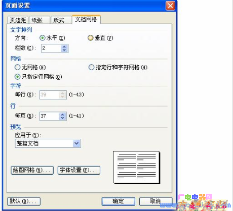 ②点击“文档网络”,文字排列处,方向选择“水平”,栏数选择区设置成“2栏”,如图2。