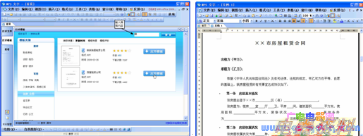 通常每种文件都有其特定的标准文体格式,例如公司要把空房出租,老总让你起草一份房屋租赁合同,那么你至少要知道租赁合同的标准格式和基本条款。一般来说你总得先找份租赁合同样本参考一下吧?有了WPS Office 2009个人版就不必这么麻烦了,只要使用在线模板新建,不管是合同、协议还是请假条都可轻松搞定。