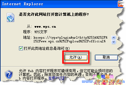 4、IE8.0会出现如下提示,单击“允许”按钮;