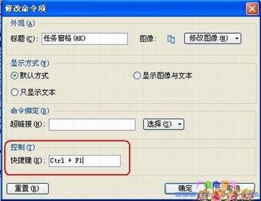 如果要是你认为打开“任务窗格”时,按Ctrl键+F1不方便,那么我们还可以自行为“任务窗格”指定一个快捷操作键。方法是在菜单栏中点击“工具——自定义”(也可以在‘工具栏’的空白处,右击,选择‘自定义’),在打开的“自定义”对话框中,先选择“命令”标签,之后点击“普通工具栏”右侧的下拉三角,选择“主菜单栏”,然后在“主菜单栏”中点击“视图”,这样,在右侧的“命令”框中,顶端显示的第一个就“任务窗格”了(如图04),此时,只要在“任务窗格”上右击鼠标,选择“编辑”,之后在打开的“修改命令项”对话框中,在“控制”的快捷键框中,根据实际情况自行指定一组快捷键即可(如图05),然后点击关闭对话框即可。这样,在以后的操作中,就可以使用我们自行指定的快捷键打开“任务窗格”了。