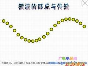 用Flash可以制作出较为生动的演示动画,但它的使用较为复杂,不宜为普通教师所掌握。由我国金山公司开发WPfe2005,是一款与微软OfficeXP深度兼容的产品,作为其重要组件之一的WPS演示2005,易学易用,又拥有强大的自定义动画功能,灵活运用她所提供的自定义动画,无需编程就可以制作出堪于Flash相媲美的动画效果。此外,用WPS演示2005制作的动画,除了可以利用WPS演示2005播放以外,还可在Power point平台上进行播放,而且效果丝毫不受影响。两周前,笔者在学校的说课竞赛中展示了用WPS演示2005制作的横波动画(如图1),赢得了老师们的一片喝彩,直到今天还有不少老师在询问WPSOffice2005的相关信息和WPS演示2005中动画的设置方法。