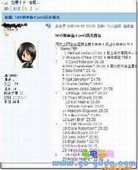 在网上搜到一份NBA效率值的前百位排名,不错的资料,马上把它下到自己电脑上存起来。(如下图所示)但说我对这份名单的排名不感兴趣,只要进了百强,从排前三的乔丹奥尼尔罗宾逊到最后的琼斯在我看来都是一样棒的。所以我决定把名次删掉,只留球员人名。操作过程我写在下面,那几位问我怎样快速删除竖行文字的同事可以看一下,以后处理类似的文件就知道怎么办了。