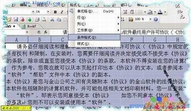 2、选中文字区域,单击格式菜单, 在下拉菜单中选中“条件格式”(如图1):