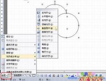 画好一个圆后,再复制另一个圆出来。把两个圆需要的重叠部分大小大致弄好。然后选中他们,对其进行对齐,这里我们进行“垂直居中”对齐。具体操作方法见图3: