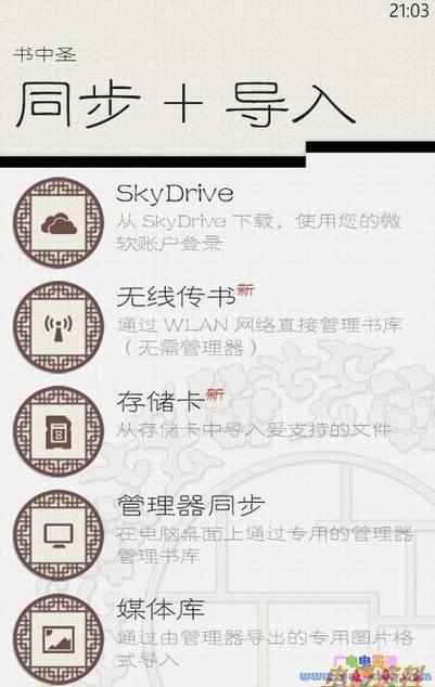 最近发现了几本好书,就下了txt版本,准备拷到诺基亚820里面看。一开始笔者以为跟iOS或Android手机类似,直接下个读书APP就能用。实际上在WP8系统中,阅读APP并不能直接打开txt电子书,多了一个导入的步骤。而现在应用市场中的阅读APP,导入txt的办法主要有三种,下面就以书中圣APP为例,为大家进行讲解。