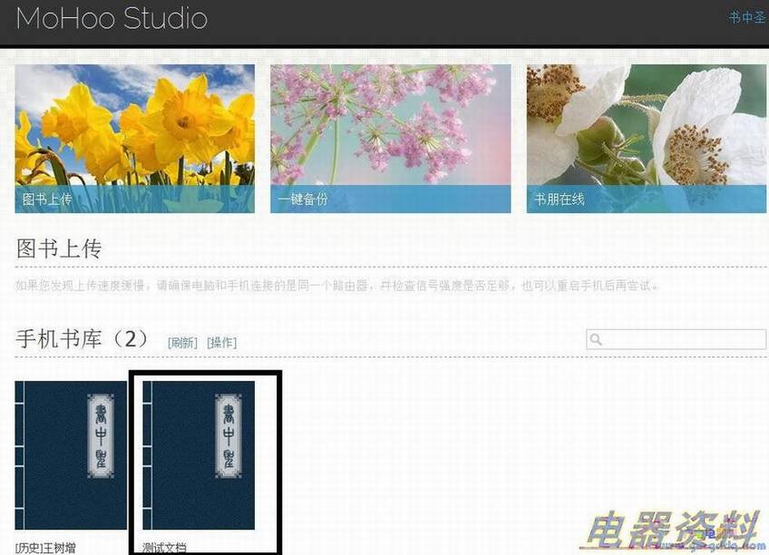 这是笔者认为书中圣APP同步txt功能中最为简单的一个。不过前提是PC和手机都连入了同一个无线局域网,如果PC没有无线网卡,那么还是用其他的方法慢慢同步吧。点击进入无线传书功能,界面中会自动显示出一个网络地址。在PC的浏览器中输入这个地址,就能进入书中圣APP的管理界面。在界面中点击图片上传按钮,选择好文件,上传完毕之后,就能在手机书库中看到txt电子书啦。