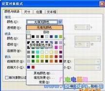 2、用双击存放题目的文本框,在弹出的“设置对象格式”对话框中,单击填充颜色选项右侧的下拉箭头,将文本框的填充色设为与背景一样的白色(如图2),