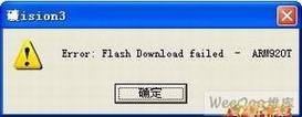 此时也会弹出“Error:Flash Download failed – ARM920T”的错误对话框。