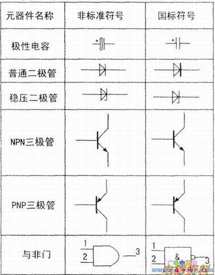 绘制图所用到的元器件图符与元器件工具栏面板上的图标按钮是两个截然不同的对象。前者运用在电路图上,一般是扩展名为Intlib或Schlib的文件;后者仅在面板上起标识作用,不运用在电路图上,一般是扩展名为bmp的文件。在元器件图符的创建中,作为一个电子爱好者,应该按照新的国家标准GB4728执行规范的电气图用图形符号。下表是部分非标准符号与GB4728国标符号的对照表。